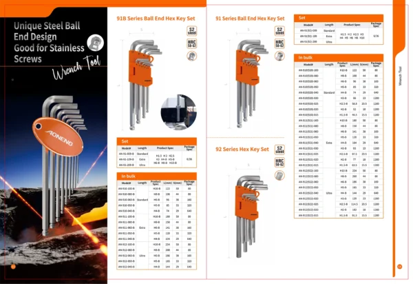 91B Series Ball End Hex Key Set