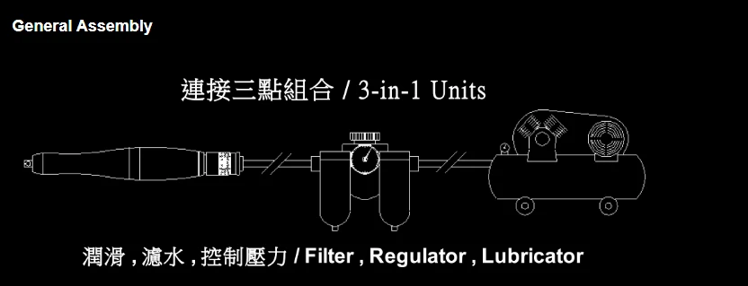 ● Set the intake air pressure of three point combination to be 90 psi (6.2 kg / cm2) as the mostsuitable condition of use.
