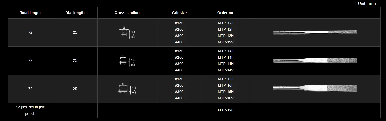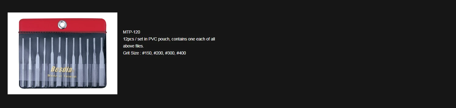 Besdia provides you with various kinds of diamond file combinations. Not only with hand files, we also offer machine files, that can be used with electronic power tools and pneumatic lappers. Tapered files is mainly used for narrow gap processing and deburring.